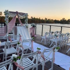 for Joanne & Simon. We prepared exclusive wedding decorations at the riverside platform. The arch that we decorated with ivory colour and powder-pink chiffons was the most special decoration of the day.